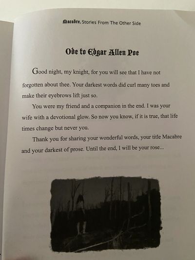 I had the book published and created a special page for him that was an Ode to Edgar Allan Poe.